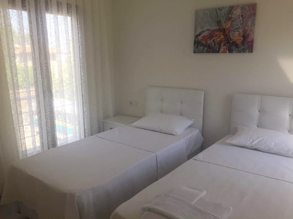 Suite 2+1 dairelerimiz yaklaşık 75m² olup açık mutfak, salon ve 2 yatak odası ve tek banyodan oluşmaktadır. Yatak odalarında double ve twin yataklar bulunmaktadır. 2+1 apartlarımızda 6 misafirimiz rahatlıkla konaklayabilmektedir. 2+1 apartlarımızda toplam 5 adet balkon bulunmaktadır. Tüm odalarımızda klima vardır. Odalarımız tüm ihtiyaçlarınız düşünülerek tasarlanmıştır.
